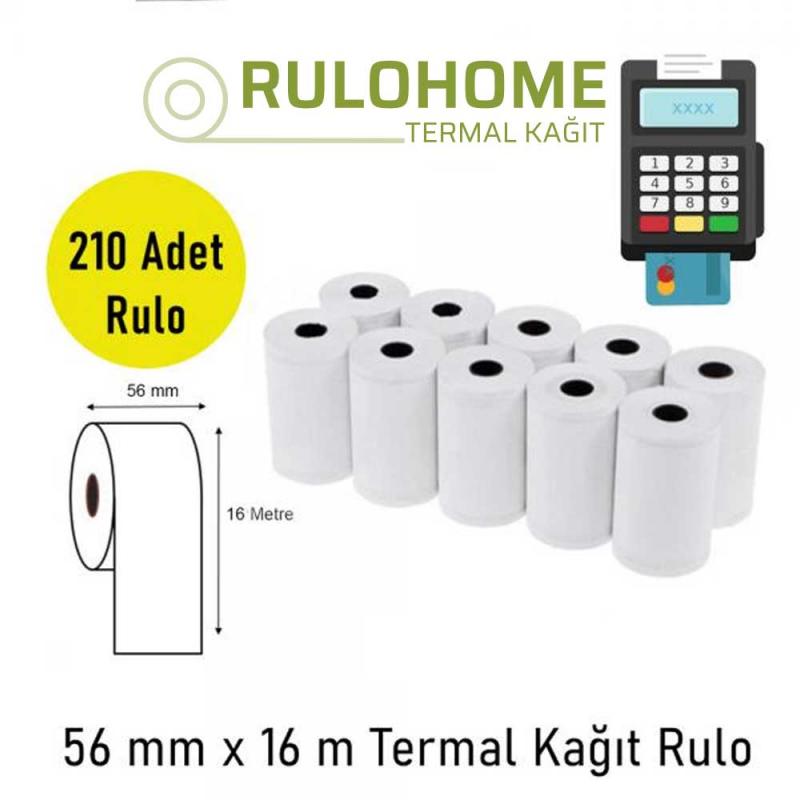56 mm genişliğinde ve 16 metre uzunluğunda termal pos cihazı kağıdı.